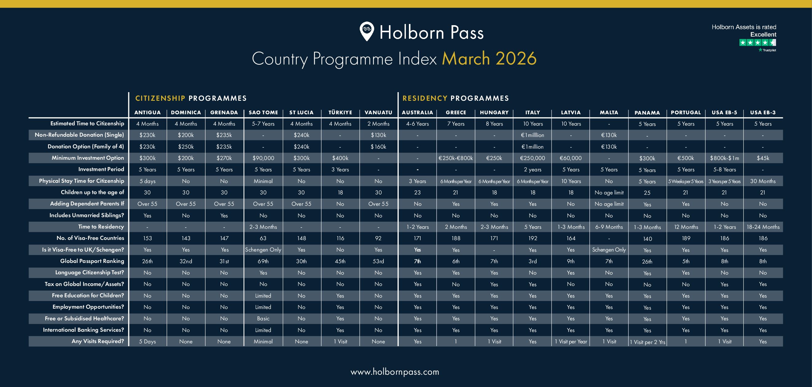 Secure your family’s future and enjoy visa-free travel to over 180 countries.